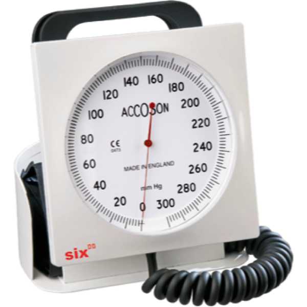 The Accoson SIX00 Desk (AC0632A) is a desk (tabletop) manually-operated aneroid sphygmomanometer. Blood pressure measurements are taken from the upper arm. It is intended for professional use.