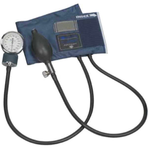 The Briggs 01-130-015 is a hand-held manually-operated aneroid sphygmomanometer. Blood pressure measurements are taken from the upper arm. It is intended for professional use.