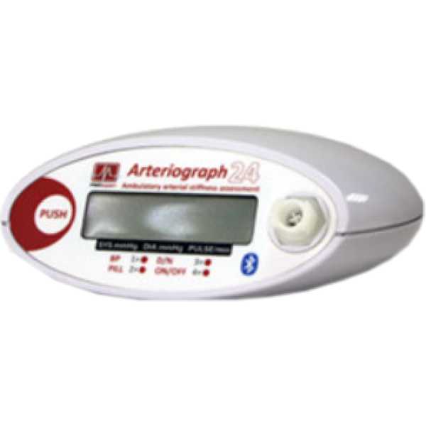 The Medexpert Arteriograph-24 BT is an ambulatory blood pressure monitor. Medaval has not found evidence proving the accuracy of its blood pressure measurement technology. Blood pressure measurements are taken from the upper arm. It is intended for ambulatory blood pressure monitoring.