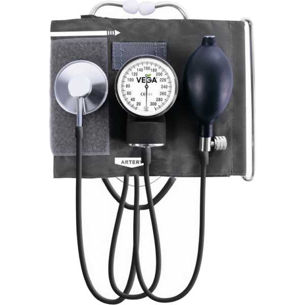 The Vega VM-200 is a hand-held manually-operated aneroid sphygmomanometer. Blood pressure measurements are taken from the upper arm. It is intended for professional use.