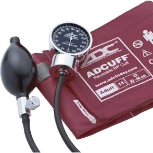 The ADC 778 Diagnostix is a hand-held manually-operated aneroid sphygmomanometer. Blood pressure measurements are taken from the upper arm. It is intended for professional use.