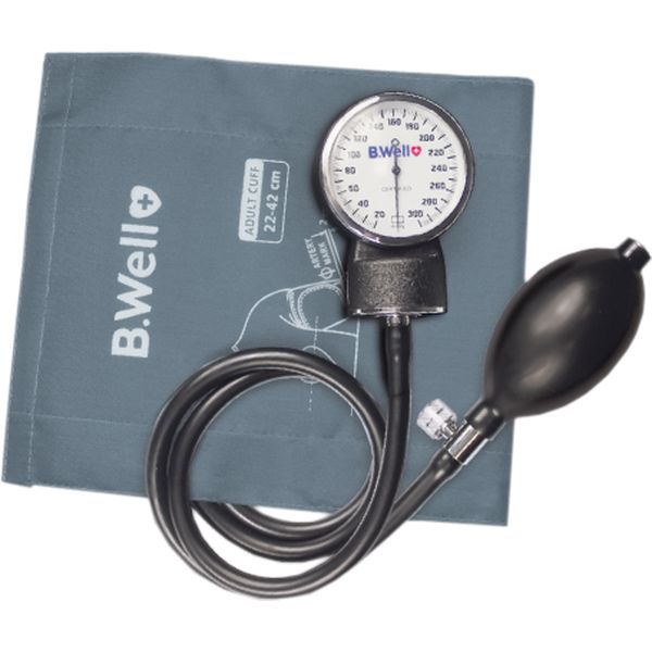 The B.Well MED-61 is a hand-held manually-operated aneroid sphygmomanometer. Blood pressure measurements are taken from the upper arm. It is intended for professional use.