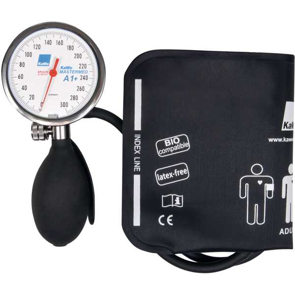 The Kawe Mastermed A1+ (11144) is a palm-style manually-operated aneroid sphygmomanometer. Blood pressure measurements are taken from the upper arm. It is intended for professional use.