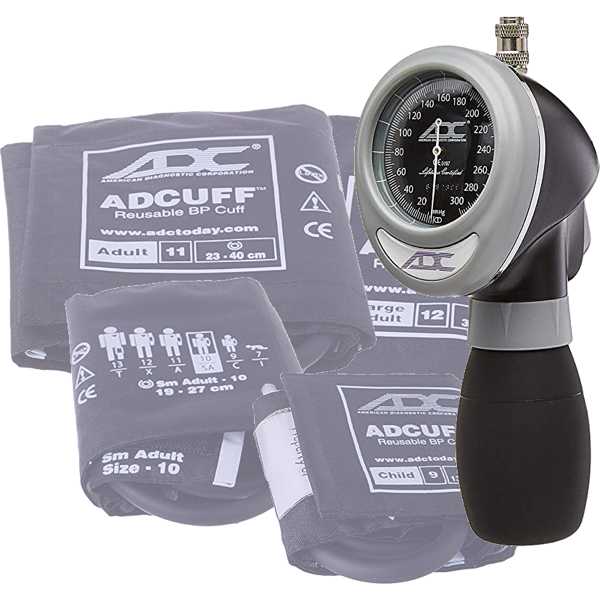 The ADC 732 Multikuf Protable 4 is a palm-style manually-operated aneroid sphygmomanometer. Blood pressure measurements are taken from the upper arm. It is intended for professional use.