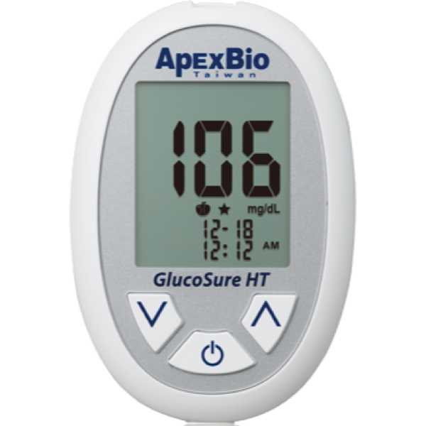 The ApexBio GlucoSure HT is an automatic blood glucose meter. Medaval has not found evidence proving the accuracy of its blood glucose measurement technology. Blood glucose measurements are taken from the finger. It is intended for self-measurement and home use.