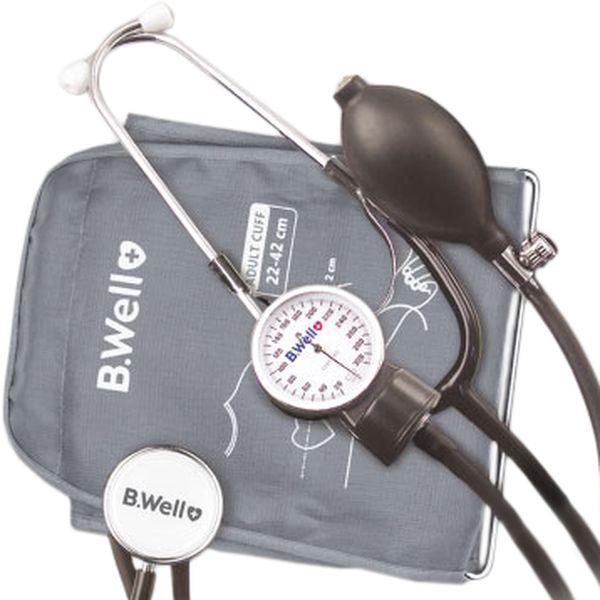The B.Well MED-62 is a hand-held manually-operated aneroid sphygmomanometer. Blood pressure measurements are taken from the upper arm. It is intended for professional use.