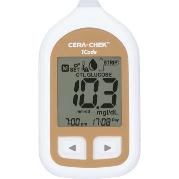 The GreenCross CeraChek 1Code (G-400) is an automatic blood glucose meter. The accuracy of its blood glucose measurement technology has yet to be proven to MDR requirements. Blood glucose measurements are taken from the finger. It is intended for self-measurement and home use.