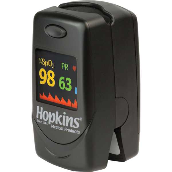The Hopkins Finger Tip PI (594027) is an automatic pulse oximeter. Information regarding the accuracy of its oxygen saturation measurement technology does not appear to be available. Oxygen saturation measurements are taken from the finger. It is intended for self-measurement and home use.