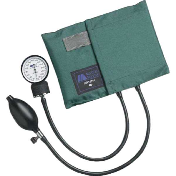 The Mabis MatchMates 01-360-251 is a hand-held manually-operated aneroid sphygmomanometer. Blood pressure measurements are taken from the upper arm. It is intended for professional use.