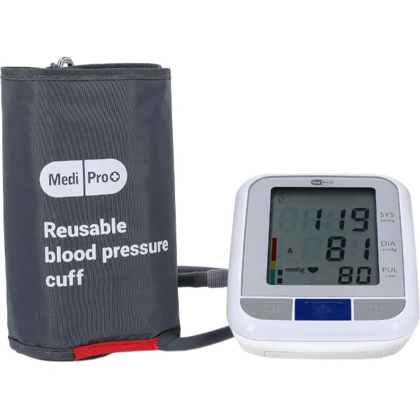 The Medipro MP-BP-BPM is an automatic blood pressure monitor. The accuracy of its blood pressure measurement technology has yet to be proven to MDR requirements. Blood pressure measurements are taken from the upper arm. It is intended for professional use.