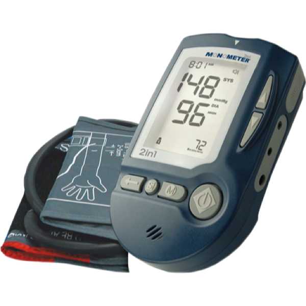 The Monometer 2in1 is a dual monitor for blood pressure and blood glucose. Medaval has not found evidence proving the accuracy of its blood pressure measurement technology and blood glucose measurement technology. Blood pressure measurements are taken from the upper arm and blood glucose measurements are taken from the finger. It is intended for self-measurement and home use.