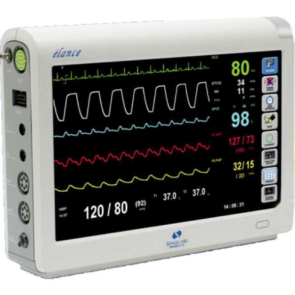 The Spacelabs Elance is a patient monitor. Medaval has not found evidence proving the accuracy of its blood pressure measurement technology and information regarding the accuracy of its oxygen saturation measurement technology does not appear to be available. Blood pressure measurements are taken from the upper arm and oxygen saturation measurements are taken from the finger. It is intended for bedside patient monitoring.